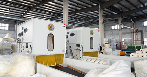 proses produksi kain non-anyaman serat pulau yang larut dalam air